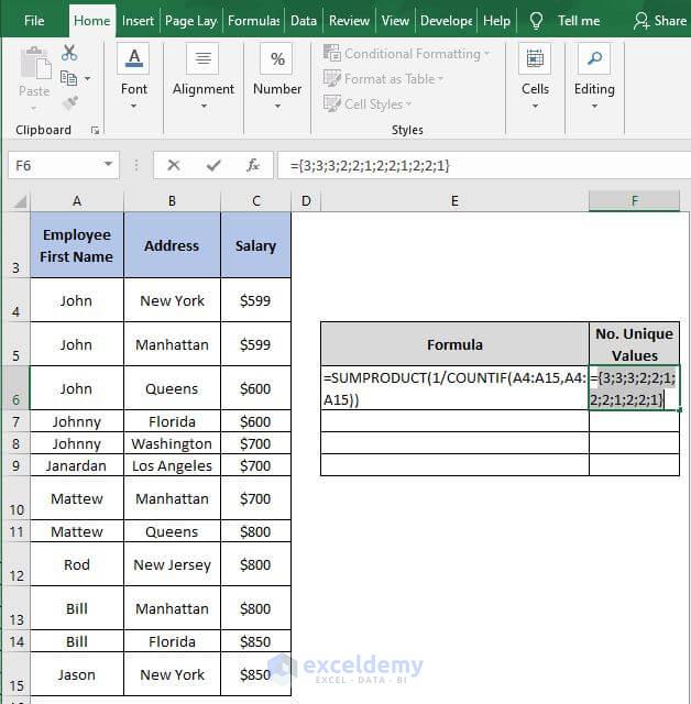 Task through nested formula by using sumproduct and countifs functions. Another way to count unique values is to use the countif function. Array formula in cell e2: In the last method, you have used the sum and countif method. But, you can also use sumproduct instead of sum.